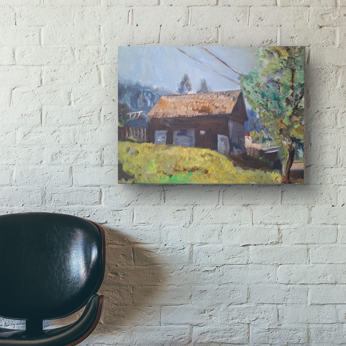 High-Quality Technical Details:Artist: Doina CotfasTitle: "The Village House"Medium: Oil on CanvasDimensions: 30 x 40 cm (approx. 12 x 16 inches)Ready to Hang: The painting is stretched on a wooden chassis, with the edges painted (minimal framing is required, if desired), and includes a hanging system on the reverse.Style: Post-Impressionist, featuring visible brushstrokes, warm colors, and a natural light specific to Eastern European landscapes.
